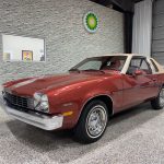 This 1975 Chevrolet Monza Towne Coupe V8 is finished in Firethorn Metallic with a contrasting Buckskin vinyl roof, delivering one of the most attractive and upscale color schemes offered on Chevrolet’s premium subcompact coupe. Exterior details include body-side moldings, sport mirrors, round headlights, chrome bumpers, and trim.